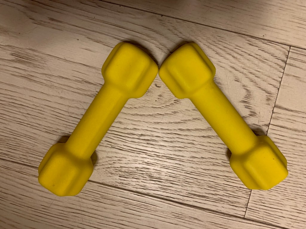 Intenté comprar una bici estática, pero habéis arrasado con ellas. Solo quedan las que cuestan lo que un coche de segunda mano. Luego pensé que mejor, porque en la vida iba a ser capaz de montarla, y Manuel Jabois ya me advirtió de los efectos secundarios – como la ves ahí, crees que puedes comer lo que sea porque después lo bajas en la bici-. Compré entonces una esterilla –que llega a finales de mayo, principios de junio, creo- y unas mancuernas de un kilo, que sí tengo ya conmigo. Como me temía, hacer pesas es un aburrimiento total. Y no hay ninguna música que le pegue.