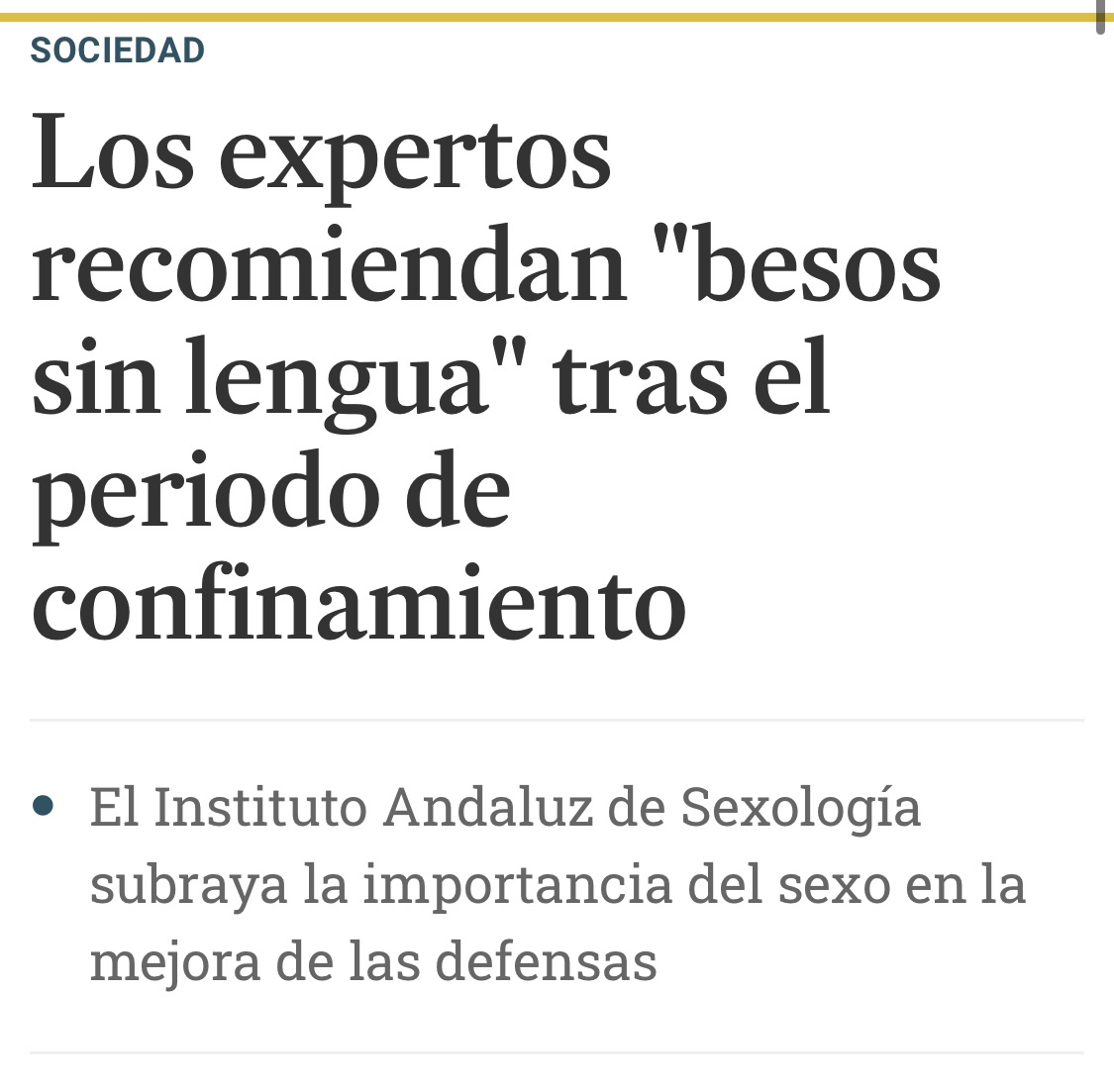 – La libertad engancha y quieres más. De momento, controlo, pero entiendo la preocupación de Simón por los rebrotes. A los 15 minutos de estar en la calle, quería llamar a los telefonillos de todos mis amigos y decirles que si podían bajar a jugar. A la media hora me han entrado unas ganas locas de ir al Barco a bailar. A los 45, quería abrazar a todos los policías. Al llegar a casa he buscado “besos desescalada” en Google (no hay nada previsto aún).