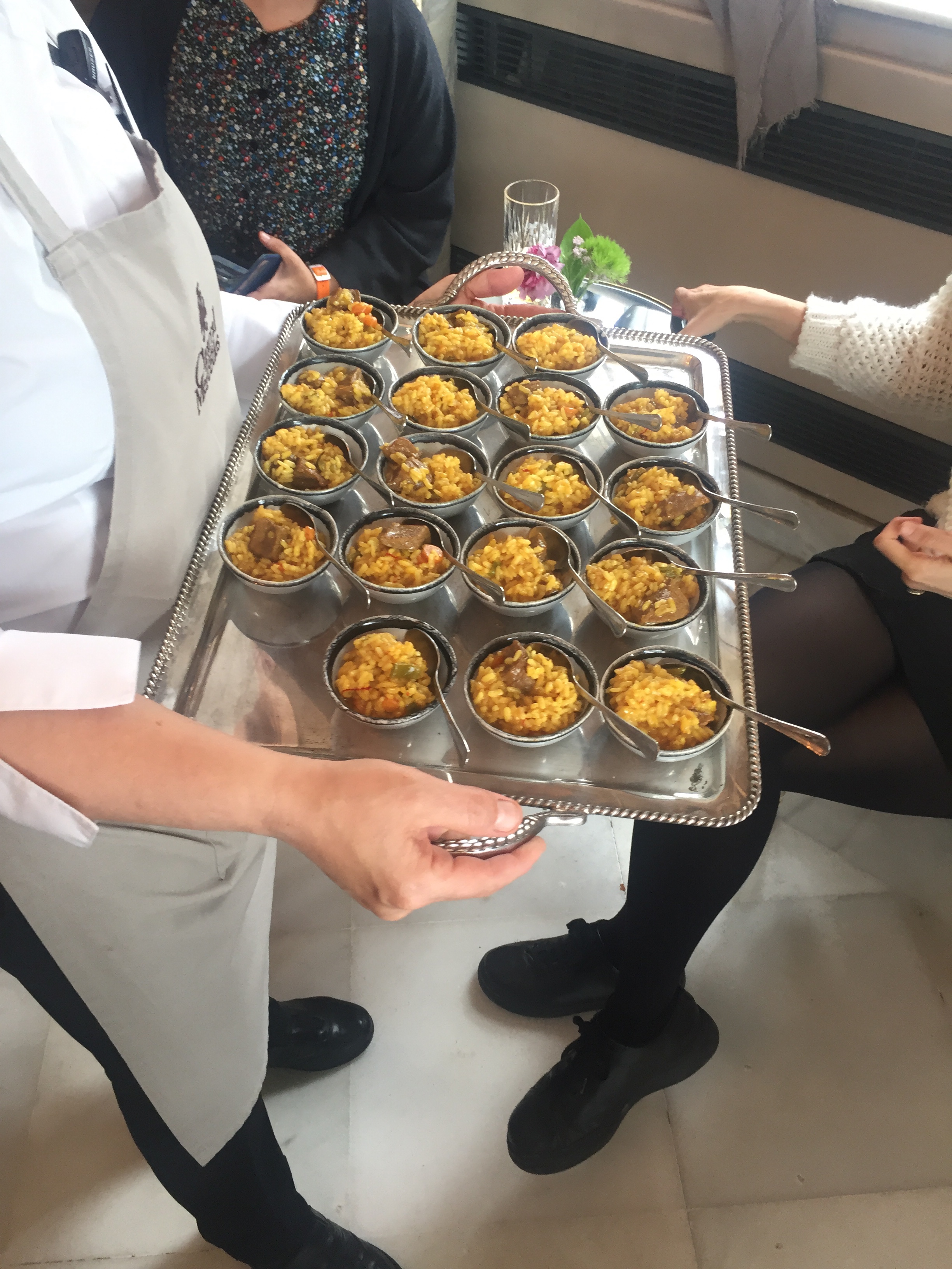 Comida: canapés bonitos pero escasos. Bocatas para el camino.