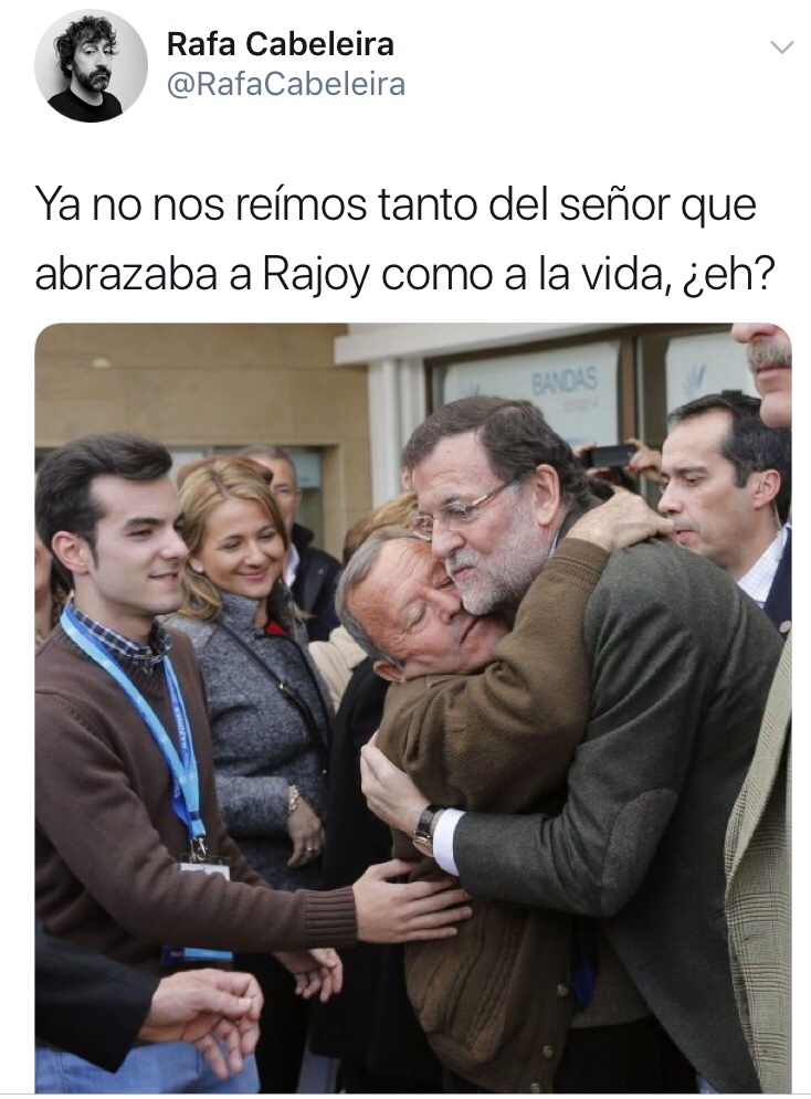 » ¿Qué días nos tocan de custodia?» . (Negociando con el PP el tiempo que vamos a poder ver a nuestro amigo y sin embargo candidato -número 1 por Málaga-). Perdí los fines de semana 😔).