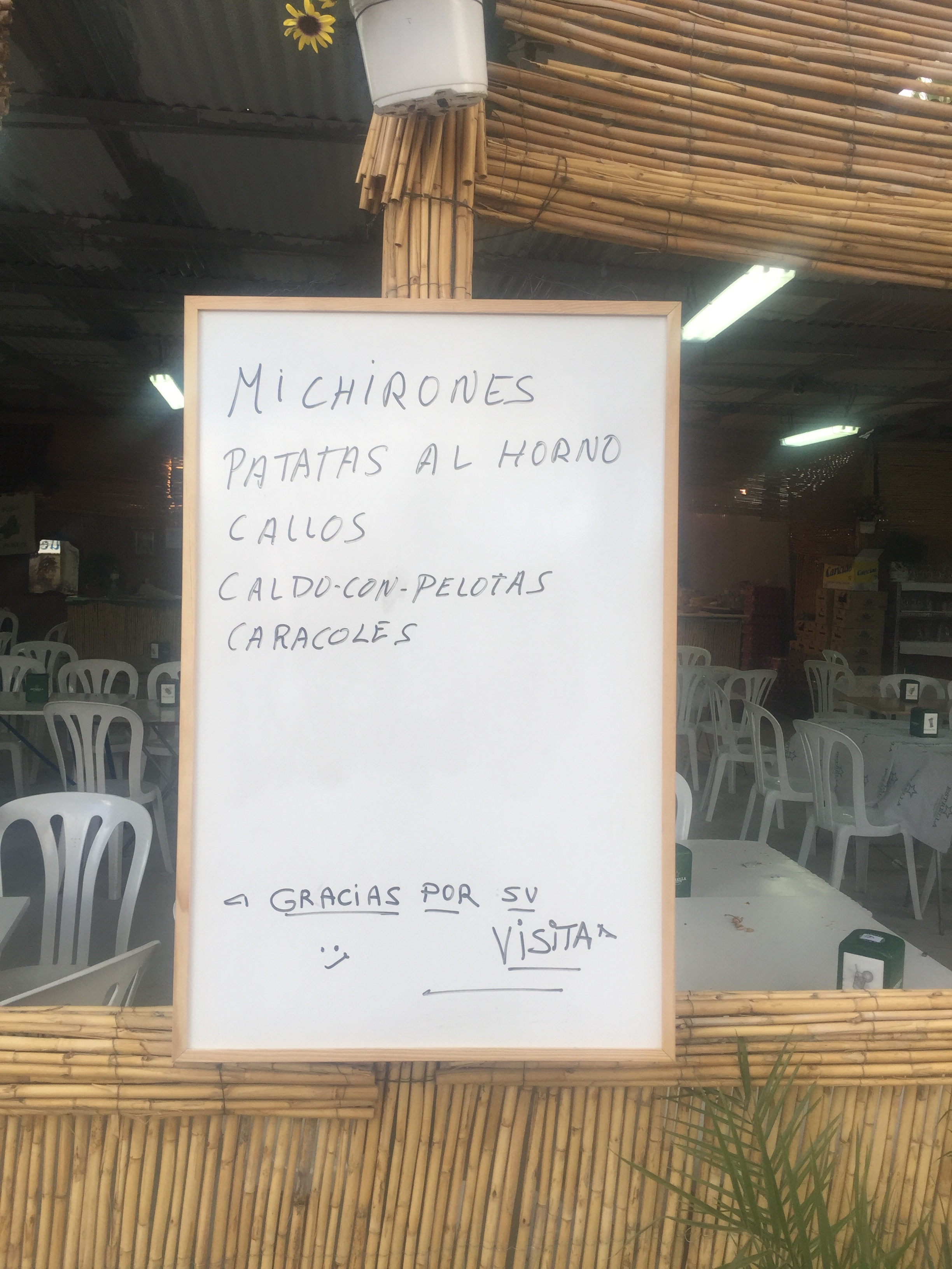 Cena: en barraca (que no caseta) en las fiestas del entierro de la sardina en Murcia.