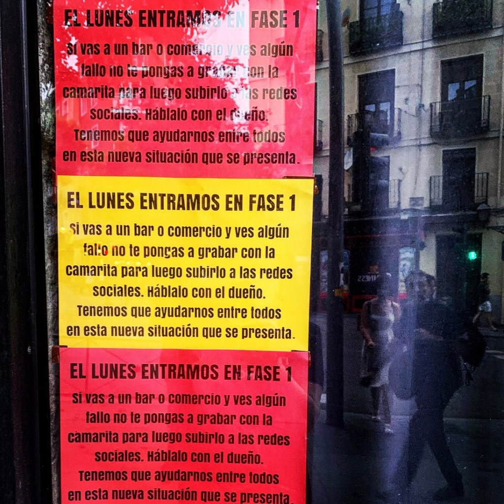 – Hoy me he dado cuenta de que cuando se hace tarde, tengo Madrid para mí sola y me quito la mascarilla para pasear, hago el mismo gesto que los detenidos de las películas cuando les quitan las esposas. Luego busco el camino más largo a casa y hago planes para la fase 2, la 3 y la vieja normalidad. Estáis todos incluidos.